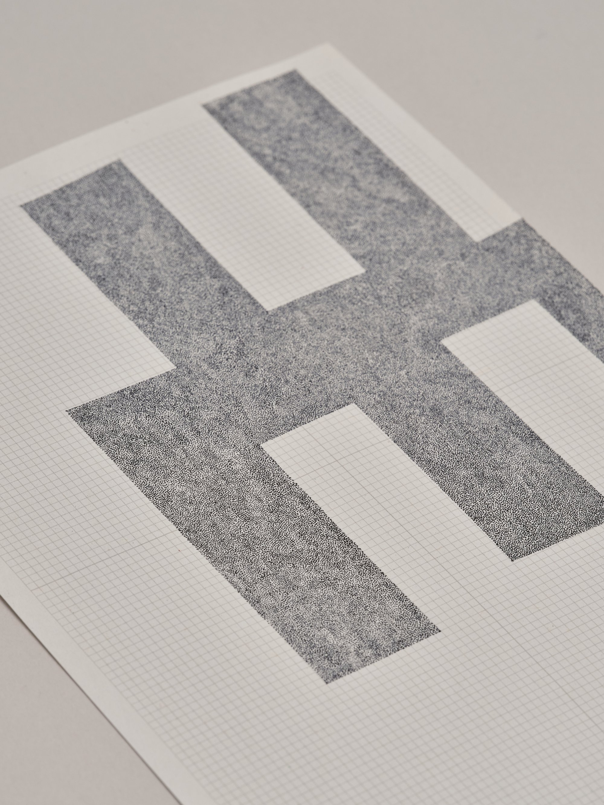 This drawing is part of an ongoing series exploring the possibilities of pattern, repetition, and process. Each piece in the series investigates how subtle shifts can emerge within structured systems. This work is an original hand drawing, meticulously rendered in ink. Through the slow, deliberate process, delicate tonal variations and nuanced marks surface, held within the boundaries of a geometric pattern mapped onto a grid.