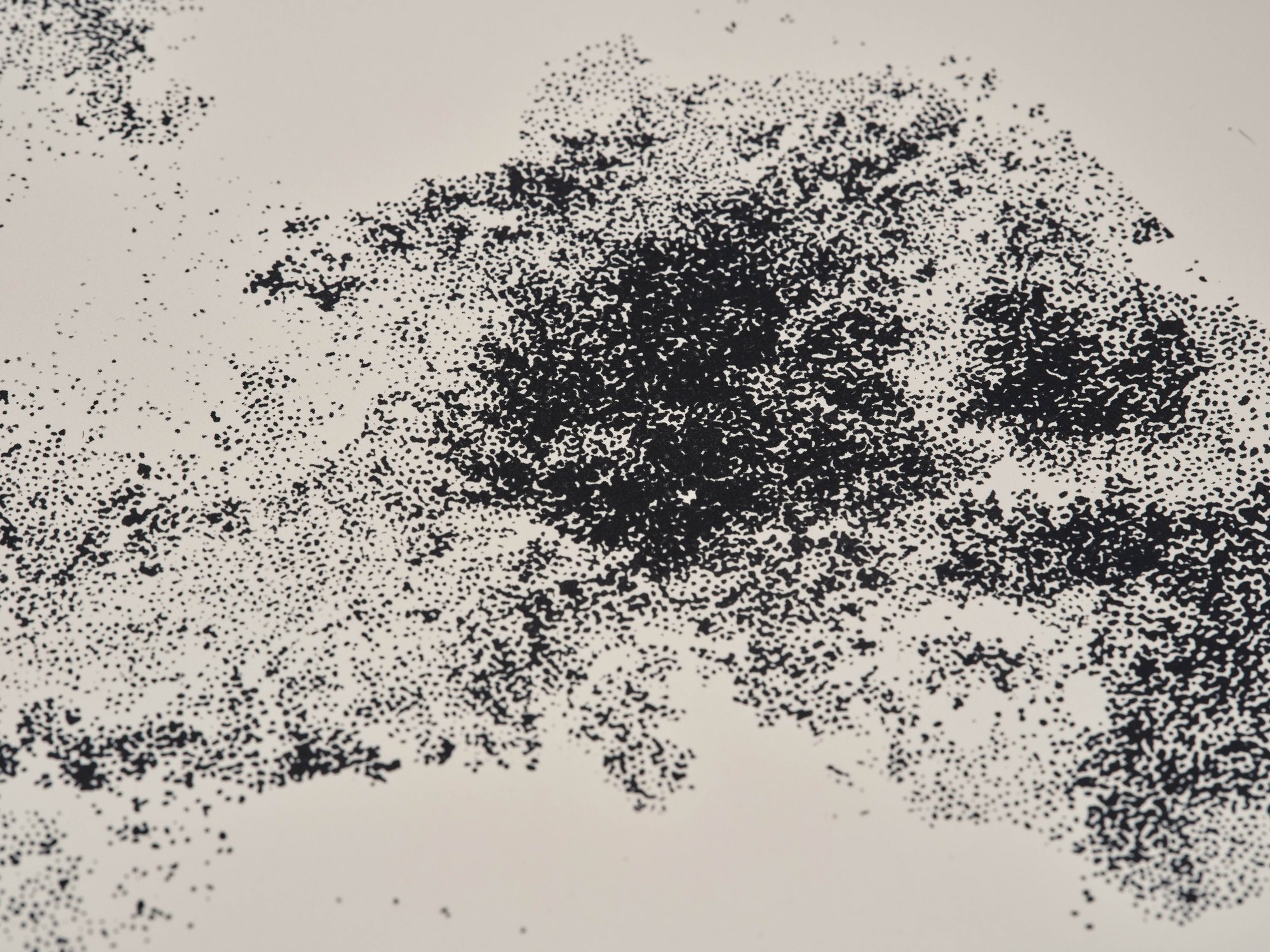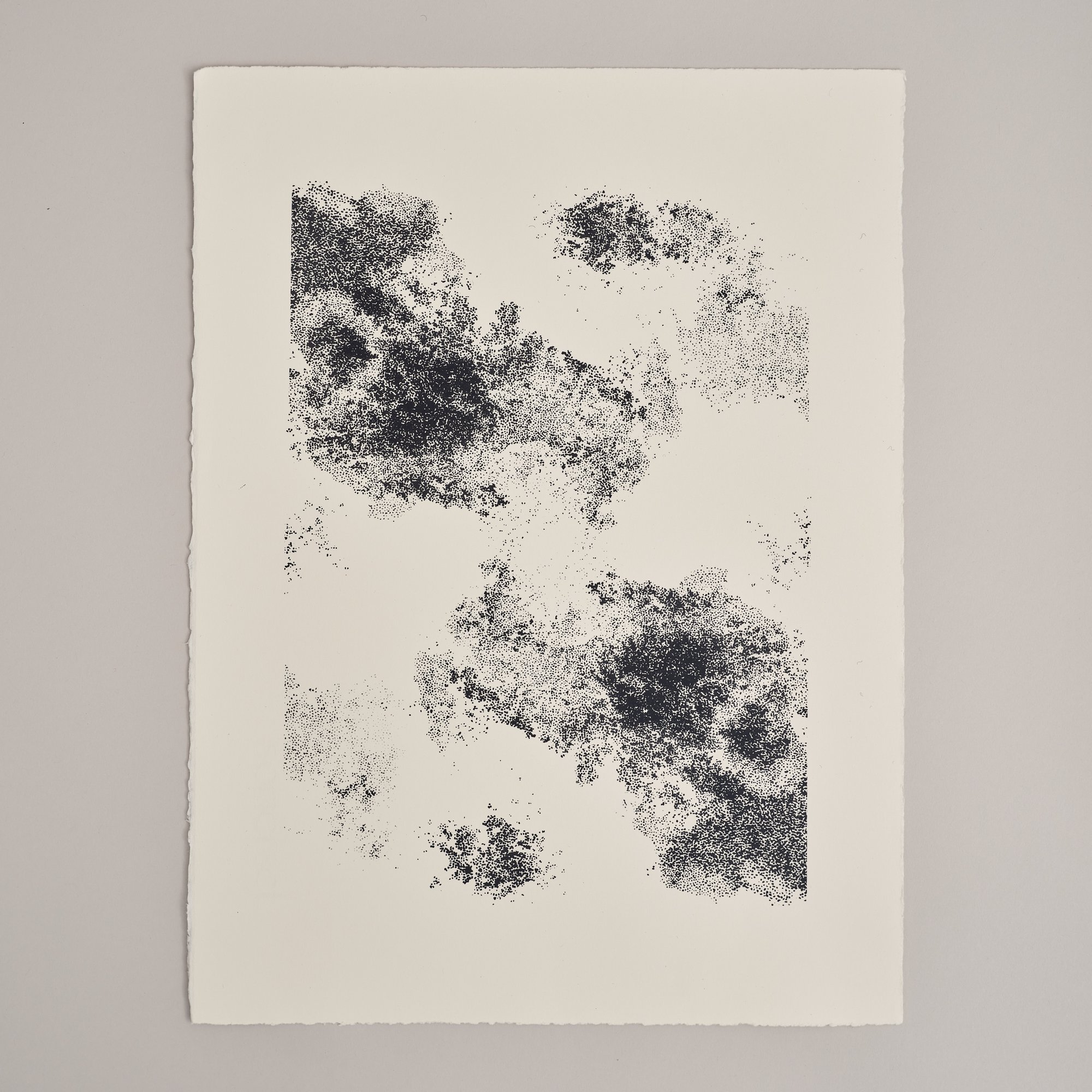Hand-pulled screen print using acrylic pigment on 250gsm Somerset printmaking paper.