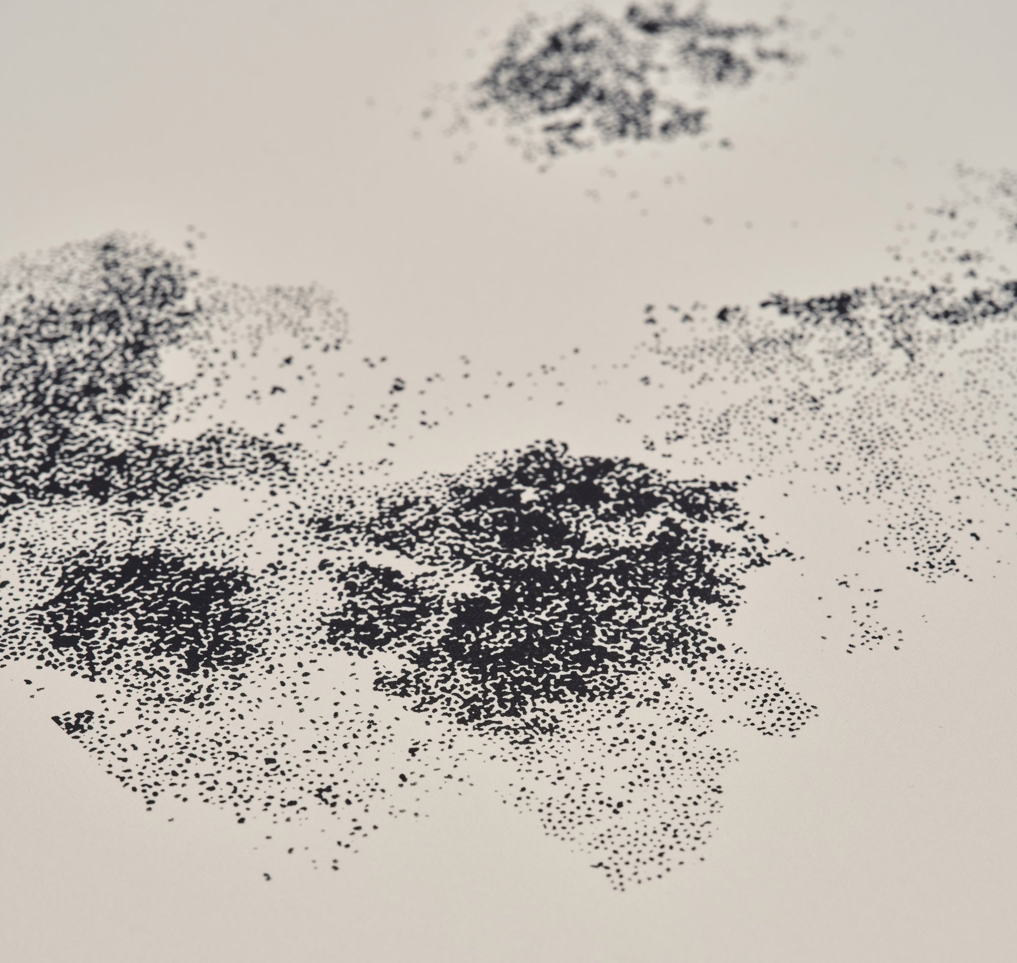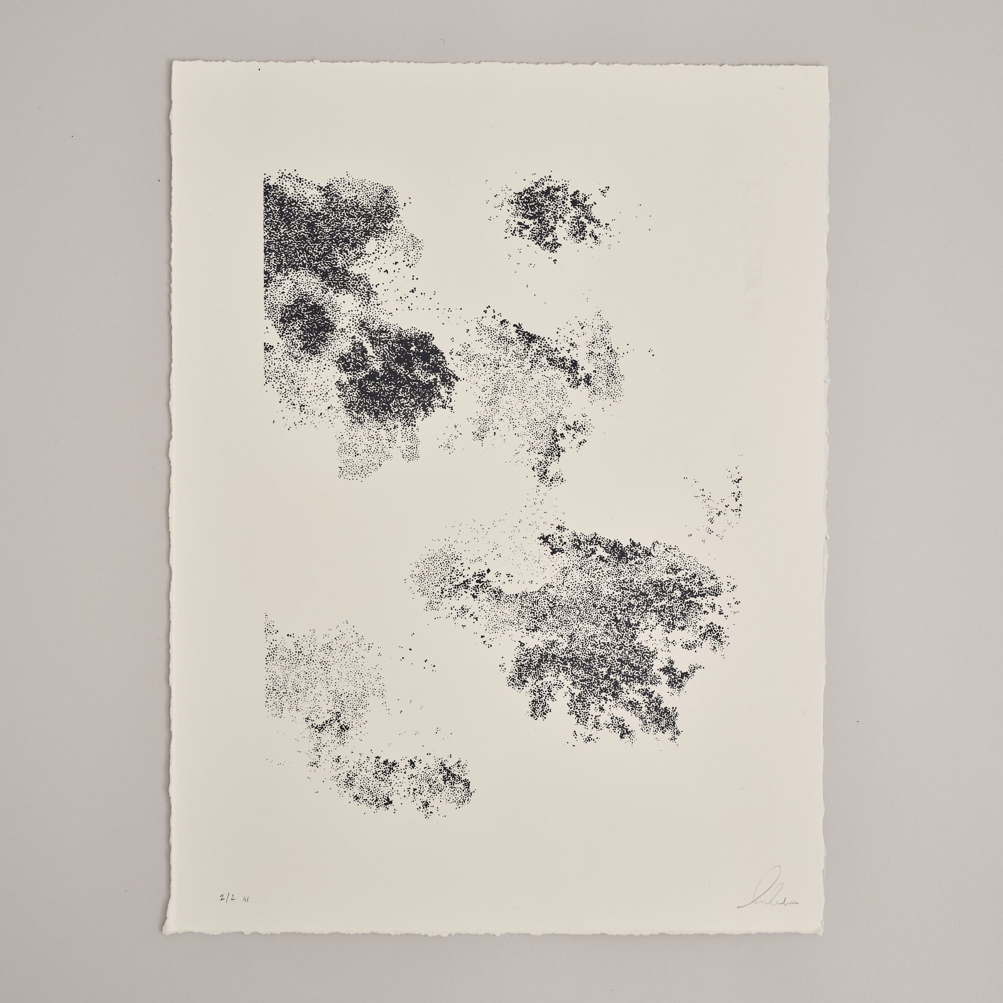 Hand-pulled screen print using acrylic pigment on 250gsm Somerset printmaking paper.